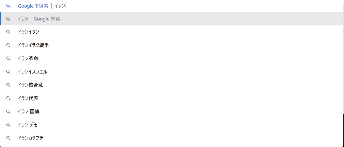 日本語で「イラン」と入れると、こんな感じのキーワード候補が表示される。